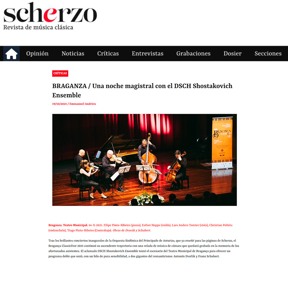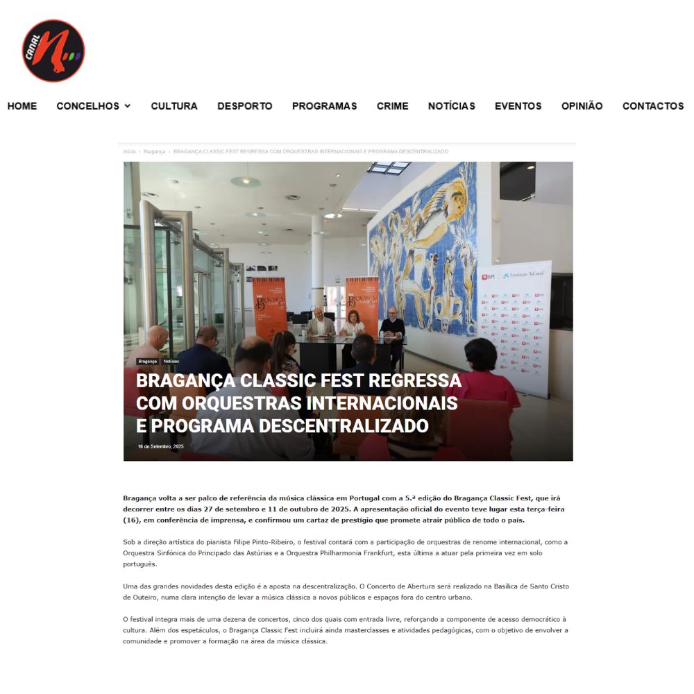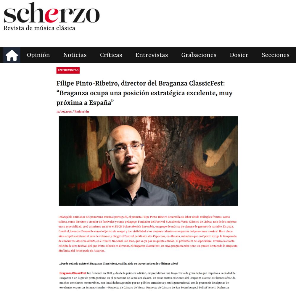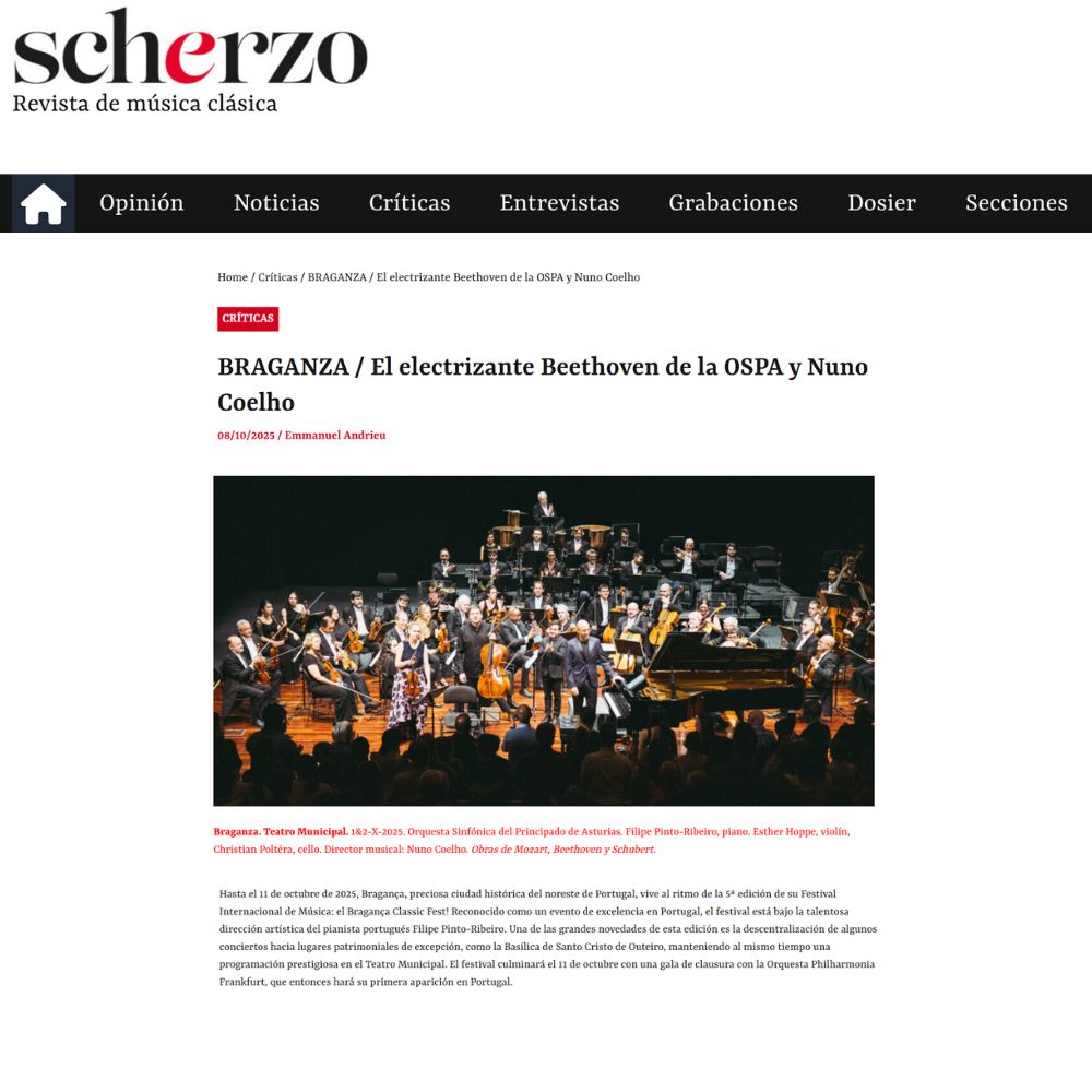 “Hasta el 11 de octubre de 2025, Bragança, preciosa ciudad histórica del noreste de Portugal, vive al ritmo de la 5ª edición de su Festival Internacional de Música: el Bragança Classic Fest! Reconocido como un evento de excelencia en Portugal, el festival está bajo la talentosa dirección artística del pianista portugués Filipe Pinto-Ribeiro.”